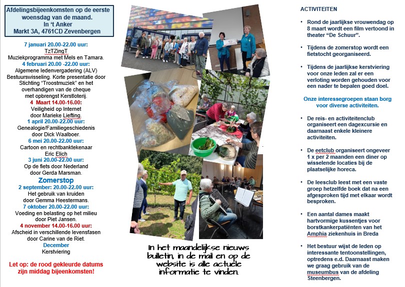 Let op de bijeenkomst op 4 maart 2026 is in de middag. Ook die van 7 november 2026/ Aanvang is 14.00 uur.