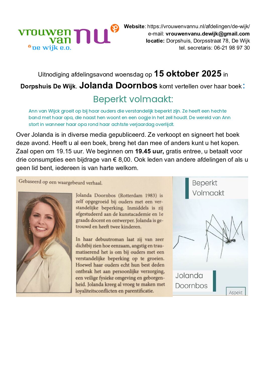 15 oktober 2025Dorpshuis De Wijk (Havezate), Dorpsstraat, De Wijk
