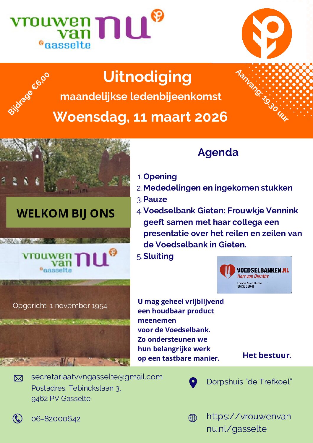 11 maart 2026Dorpshuis de Trefkoel, Achter de Brinken, Gasselte