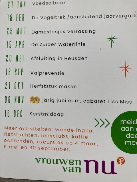 We zijn een actieve, gezellige club vrouwen met een brede interesse. Een afdeling van de landelijke vereniging Vrouwen van Nu, het grootste vrouwennetwerk van Nederland · De vereniging heeft geen politieke of religieuze kleur · We zijn er voor vrouwen van alle leeftijden.
