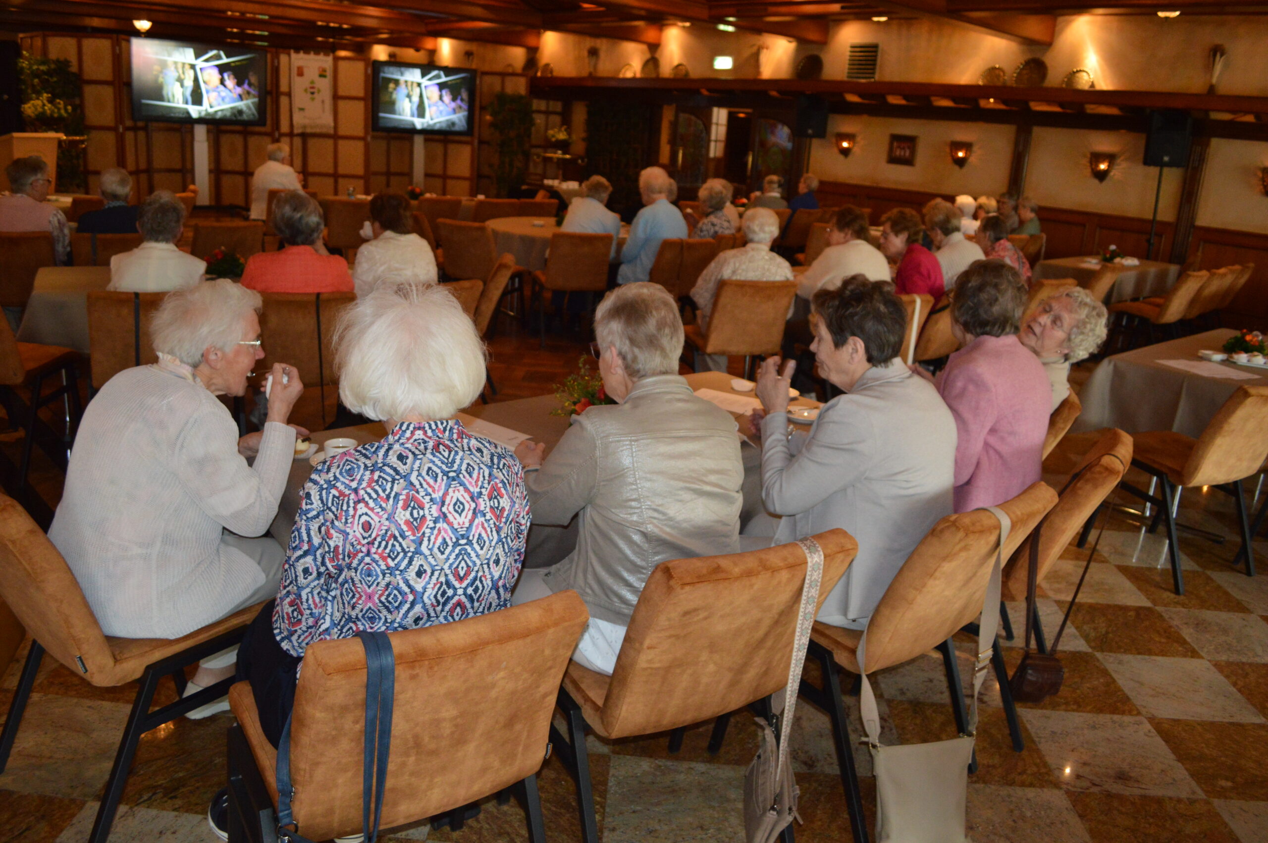 Het thema van vandaag is Verbinding. Onze voorzitter vertelt een stukje geschiedenis aan de hand van het allereerste notulenboek. Ze vond zowel haar moeder als haar grootmoeder in dat boek. Als dat geen verbinding is!! We proberen allemaal mee te zingen met het lied Voel de Verbinding. Eén van onze leden draagt een prachtig gedicht voor en op twee grote schermen komen foto’s voorbij van vroeger en nu.