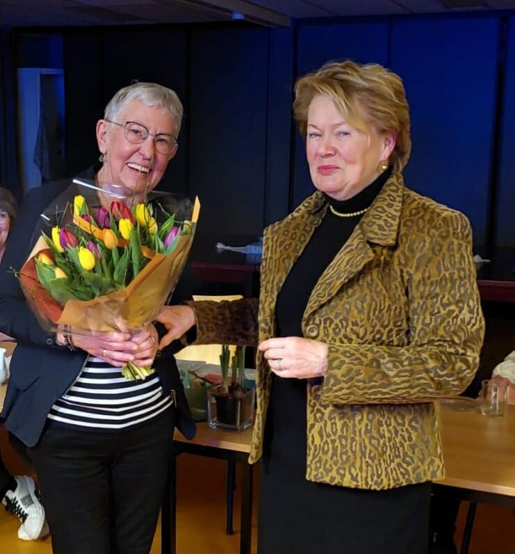 Tijdens de jaarvergadering van 20 februari jl. is Tonny Hoving in het zonnetje gezet. Zij vierde haar 55-jarig jubileum. Elly Kok is ook 55 jaar lid van Vrouwen van Nu maar kon niet aanwezig zijn. Zij ontving haar bloemen later thuis. De contactvrouwen die zich inzetten voor ledenadministratie, ziekenbezoek etc. kregen als blijk van waardering allemaal een roos.