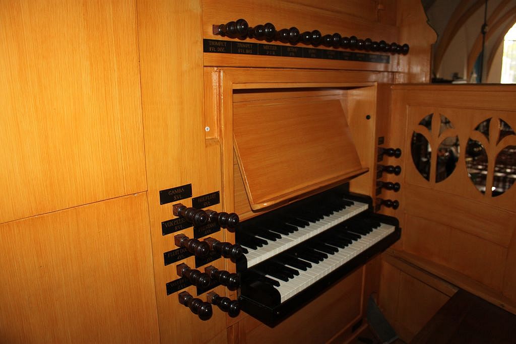 Het orgel heeft 2 klavieren met ieder 55 toetsen met 5 registers en 30 pedalen, totaal geeft dat 470 pijpen die keurig op volgorde staan in de klankkast.