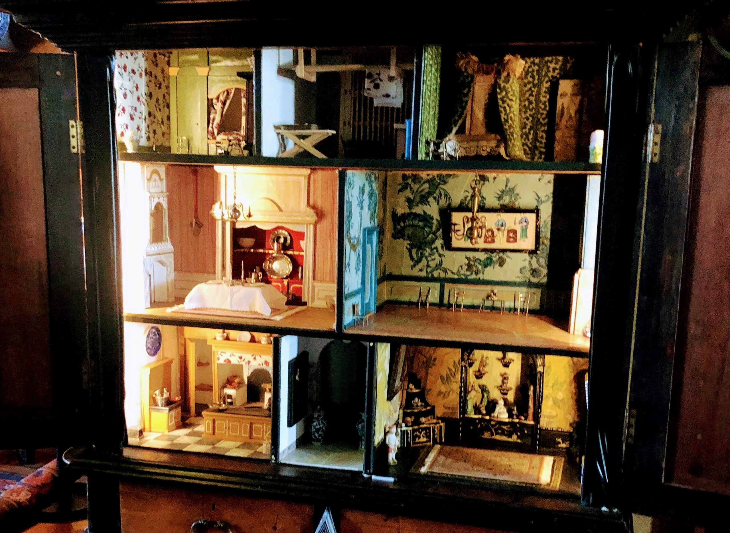 Tot slot deed hij een kast open en daar was een volledig ingericht poppenhuis ! Met zilveren voorwerpjes, zelf bekleed met bijv. behang uit die tijd.