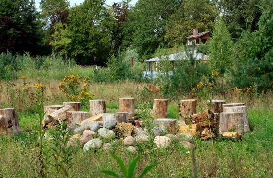 Het gebouw wordt omgeven door een groot grasveld, natuurvijver en een eigen bos. Ook werd er een grote boomhut gebouwd waarin overnacht kan worden.