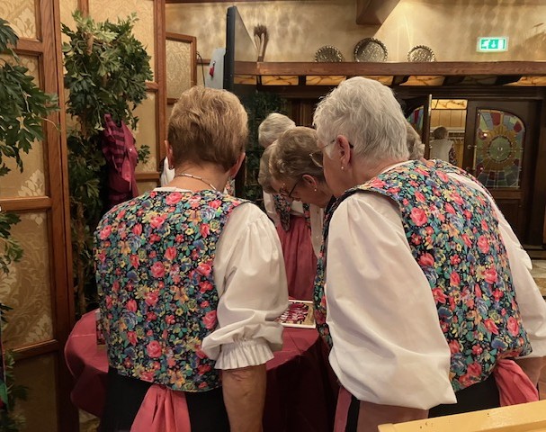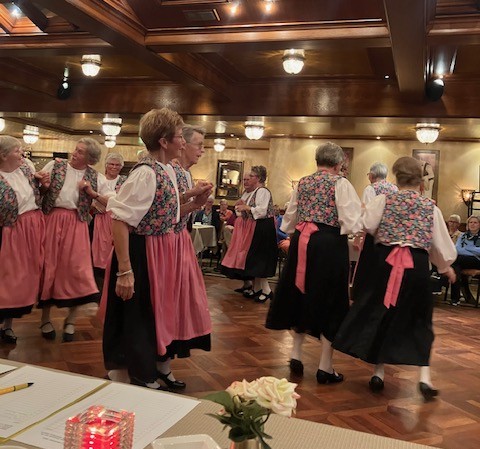 Onze werelddansgroep bestaat 40 jaar!! We vierden het met een geweldig optreden met dansen uit Oostenrijk, Frankrijk, Amerika, Hongarije, Nederland en nog meer. Maar liefst 6 van de 12 dansers zijn al vanaf het eerste begin verbonden aan deze groep. Het werd een staande ovatie van de 86 toeschouwers, leden van onze afdeling. Onze voorzitter reikte een bijzonder tegeltje uit. Toen was er een drankje met hapjes uit de diverse landen van de dansen.