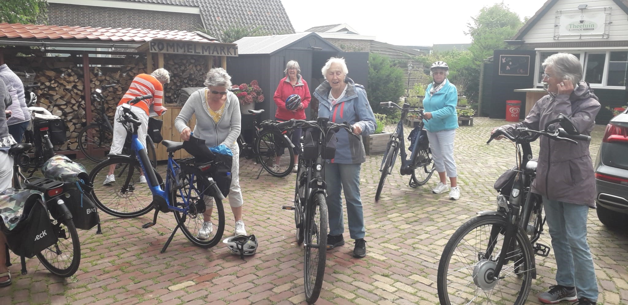 Met mooi weer vertrokken 13 leden voor de jaarlijkse fietstocht. Ans had een prachtige fietstocht uitgezet door het mooie West-Friesland. De koffiestop bij het Theehuis in Zwaagdijk was heel gezellig. We zaten in de zon in de mooie achtertuin en de koffie met lekkers smaakte heerlijk. Daarna ging de fietstocht verder: via Benningbroek naar Abbekerk. Bij het uitkijkpunt aan het Pannepad verorberden we onze meegebrachte lunch. We zaten daar heerlijk en reden via de Weere naar Oostwoud. Daar hadden we bij theetuin ‘Het Vosje’ onze nazit. Ook hier konden we in de mooie tuin zitten en werd Ans bedankt voor het uitzetten van deze prachtige tocht.