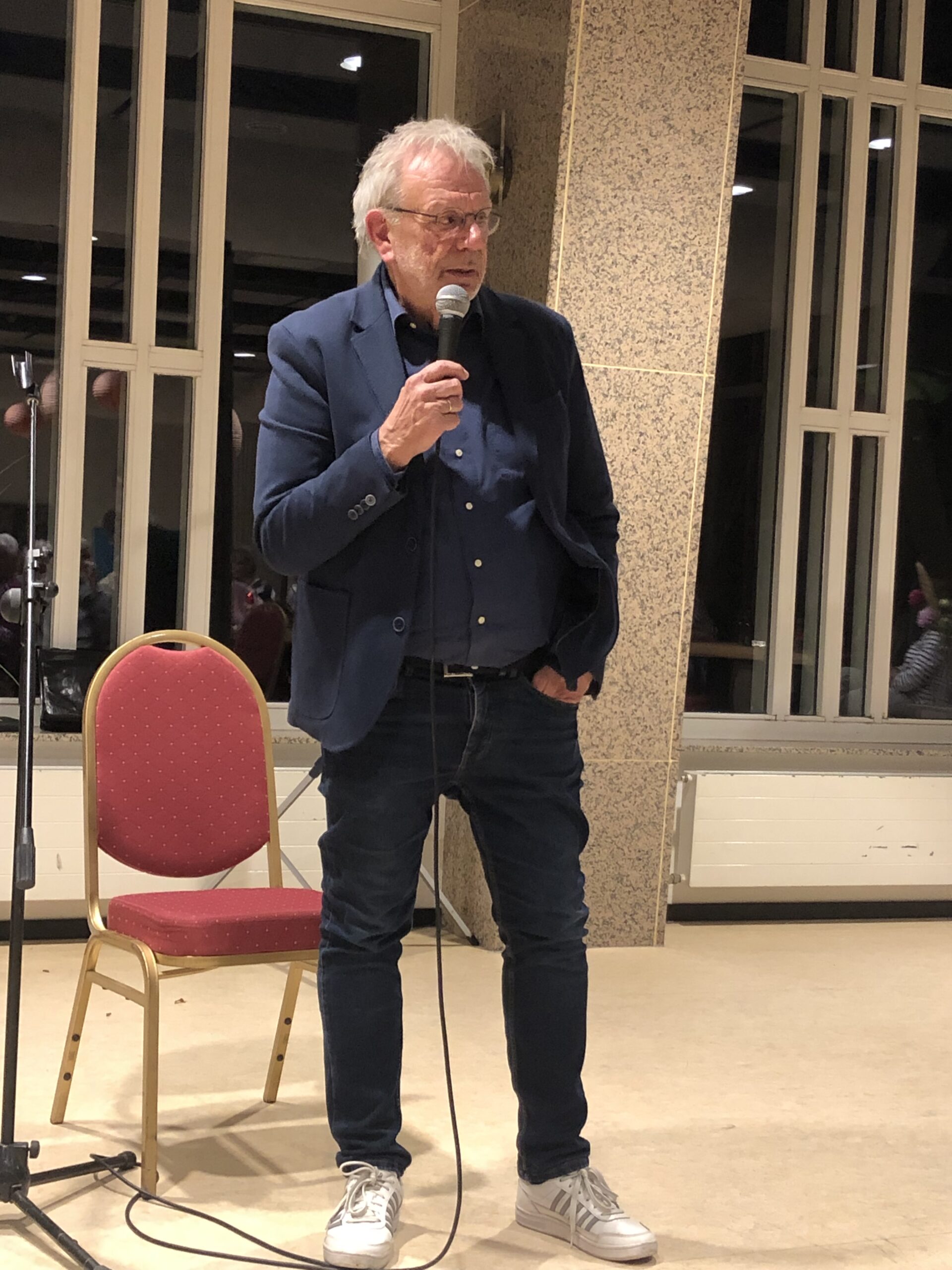 Spannend, dinsdagavond 4 november kwam de heer Henk Dillerop naar de Klameare. Al heel lang stond deze spreker op het verlanglijstje van de Vrouwen van Nu en nu kwam hij. De grote zaal was geweldig gevuld en we waren erg benieuwd wat de avond zou brengen. Wie is Henk Dillerop uit Snakkerburren : oud politieagent, rechercheur, gevangenis directeur, werkt mee aan cold-case zaken, dichter, podcastmaker, schrijver, werkt en speelt mee in de tv serie “Hel of Hotel” , verhalen verteller enz.enz. Ruim veertig jaar heeft hij tussen de criminelen gewerkt. Kortom een man met veel energie en humor, en dat werd meteen duidelijk. De mobiel mocht aan blijven op voorwaarde dat als die af ging hij op de speaker moest zodat we allemaal mee konden luisteren. Negentien jaar was Dillerop toen hij als politieagent aan de slag ging in Drachten, een jong mannetje in uniform die daar te maken kreeg met z’n eerste moordzaak. Een man die zich zelf aangaf omdat hij zijn vrouw had vermoord en het lichaam in de koffiebak van de auto had liggen, heftig. Bij de tweede moordzaak als gevolg van een echtelijke ruzie moest hij het overleden lichaam bewaken wat ook niet in je koude kleren gaat zitten. Gelukkig is er tegenwoordig veel professionele hulp voor de hulpverleners om dit te verwerken. Het politiewerk was toch niet zo zijn ding en zo werd Dillerop rechercheur bijzondere zaken en chef van de criminele inlichtingendienst. Bijzondere verhalen werden hier over verteld, wat er zich in bepaalde zaken afspeelde en hoe dat dan in z’n werk gaat. Bijvoorbeeld de rol die hij speelde in de zaak van de moorden in Anjum, bekend als “De Heks van Anjum” . Na 26 jaar wordt Dillerop gevangenis directeur van oa de Marwei in Leeuwarden, en de toen nog vrouwengevangenis in Heerhugowaard. Er zijn nu nog drie vrouwengevangenissen in Nederland. Hij vertelde hoe het leven daar is voor de vrouwen en wat er gebeurt als er baby’s geboren worden in detentie. Als de moeder een niet te grote “rugzak” heeft, dan mag het kindje tot vier jaar bij de moeder blijven en wordt er voor gezorgd dat het kindje zo weinig mogelijk mee krijgt van de bewaakte omgeving en ziet het er uit als een soort kinderdagverblijf. Er zijn ook gevallen, dat de moeder het kindje niet bij zich mag houden. In dat geval wordt zij na de bevalling uit de ouderlijke macht ontzegd. Gelukkig komt deze situatie weinig voor. Er zitten gemiddeld 9000 mannen en 500 vrouwen vast in het Nederlandse gevangeniswezen Per jaar worden totaal ruim 25.000 mensen gevangen gezet, daaruit kun je concluderen dat de straffen relatief kort zijn. Tussen de twee weken en vier maanden. De verdeling is ongeveer 28 gedetineerden met 2 bewakers. Ze zijn “verplicht”om aan de arbeid of andere activiteiten mee te doen, zo niet dan alleen op cel. Ze werken voor een kleine euro per uur, en hier kunnen ze de tv, telefoonkaart, roken en boodschappen van betalen. Alcohol mag niet, maar ze proberen dat wel zelf te stoken van bv cola en broodkruimels, dat mislukt meestal wel. Zo kregen we een kijkje in het leven binnen de muren van de gevangenis, smeuïge maar ook heftige verhalen kregen we te horen en we konden volop vragen stellen. Wat een bijzondere avond, op humoristische wijze gebracht door Dillerop over dit onvoorstelbare leven van zware criminelen, politie, recherche en gevangenis personeel bij ons. Hier zal nog lang over na gepraat worden door de dames. Niesje Abma