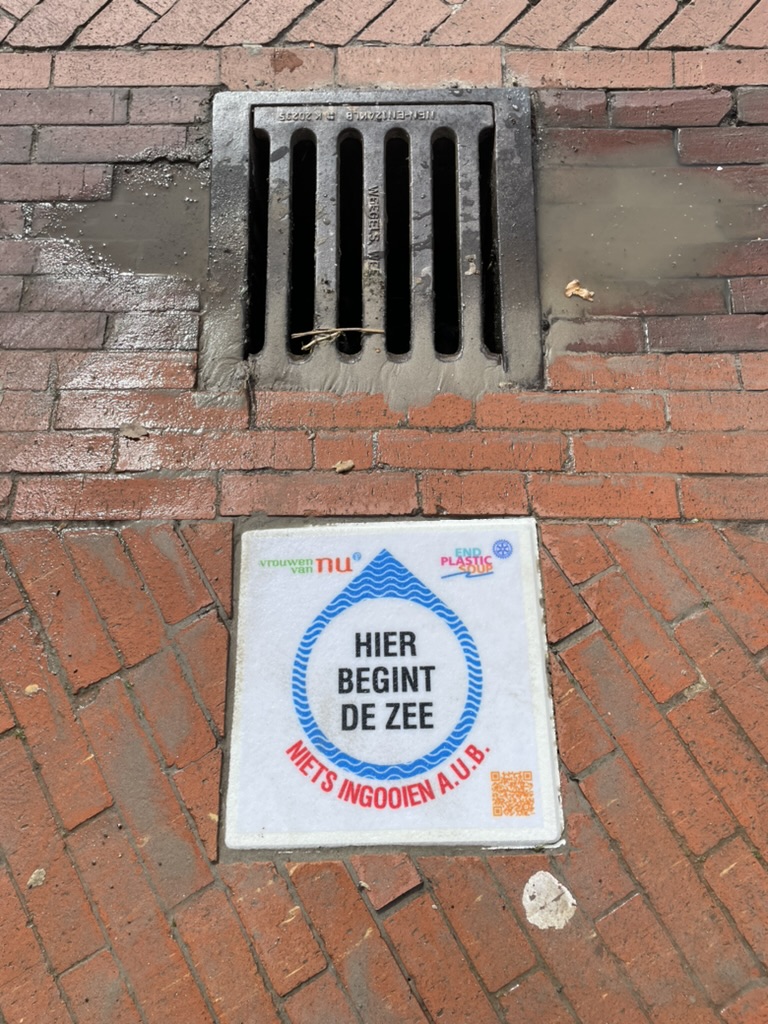Het plastic gebruik moet verminderen, maar ook na gebruik moet er bewuster met het plastic afval omgegaan worden. Om dit bij een breed publiek onder de aandacht te brengen wordt er op diverse in het oog springende plekken een “stoeptegel” geplaatst bij een afvoerput om zo de mensen er bewust van te maken dat alles wat in het riool gaat uiteindelijk in zee terecht komt en vervolgens via voeding en drinkwater als microdeeltjes weer tot ons komt.