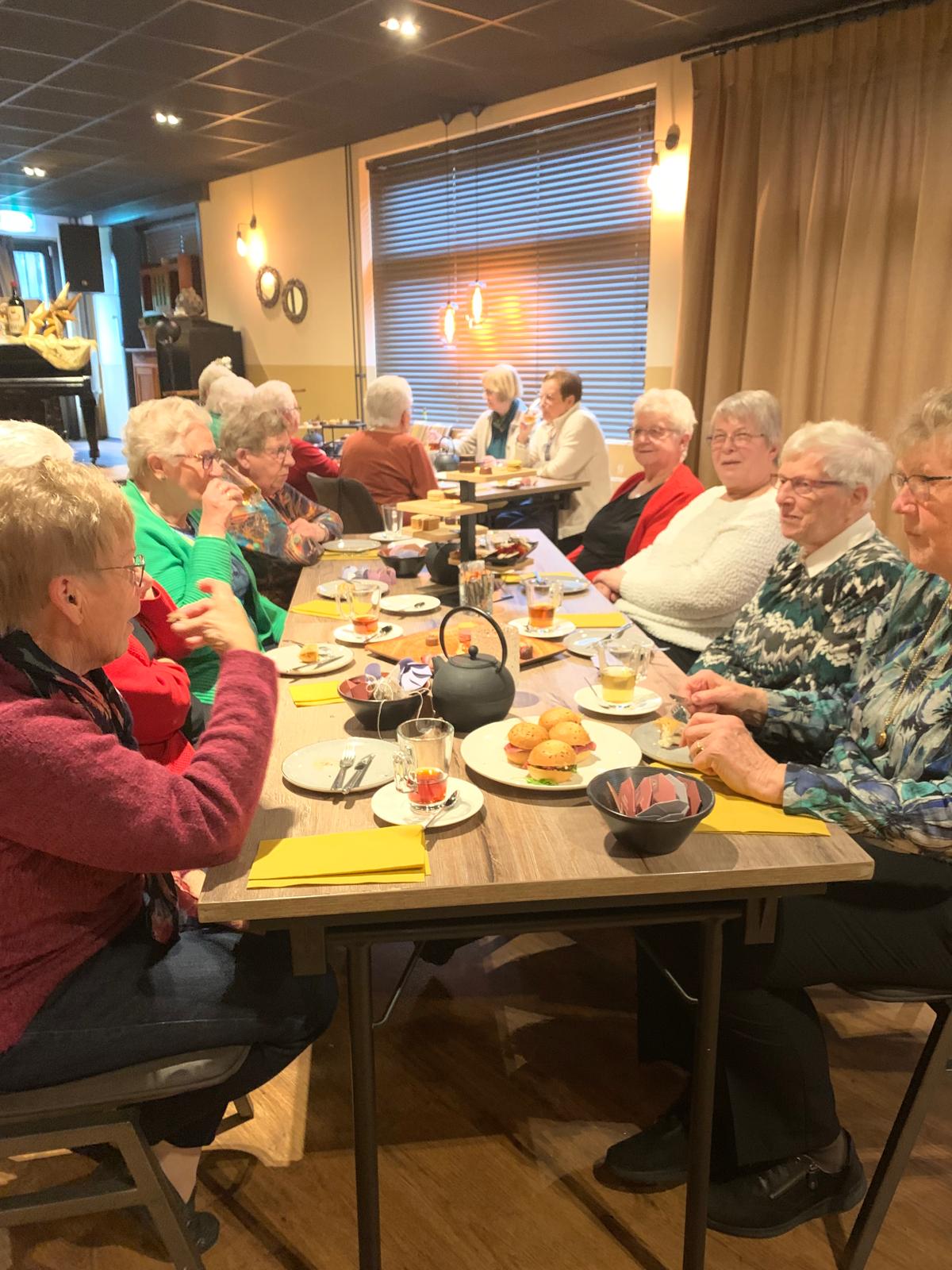 Wat was het weer een heerlijke middag, met 40 dames naar het dinercafé Norgerhout voor een High Tea. De Stamboomzaal was prachtig versierd.