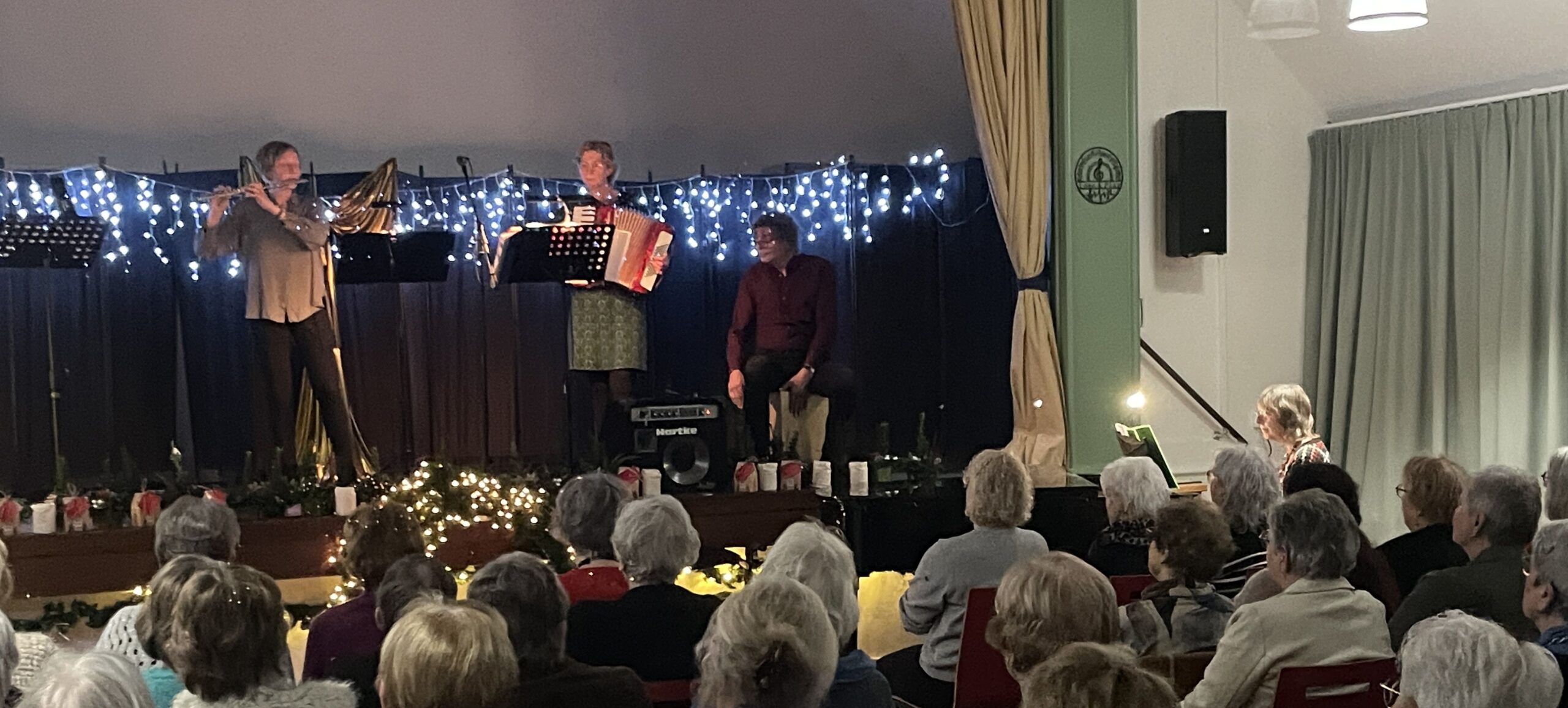 Gisteren hebben we met meer dan 110 leden kerstavond gevierd. Door de mooi versierde zaal kwamen we al snel in kerststemming. De familie Hilderink (3 zussen en 1 broer) zong prachtige kerstliederen, zowel 'a capella' als met instrumenten. Uiteraard zongen we gezamelijk ook nog een aantal bekende liedjes. Eén van de leden droeg een hedendaags kerstverhaal voor. In de pauze genoten we van een drankje en zelfgemaakte hapjes. Ter afsluiting werden de diverse commissie leden bedankt voor hun inzet met een door de tuinclubs gemaakt kerstbakje. We hebben allen genoten van deze heerlijke avond. Ter afsluiting was er een kerstpresentje met lekkers voor iedereen.