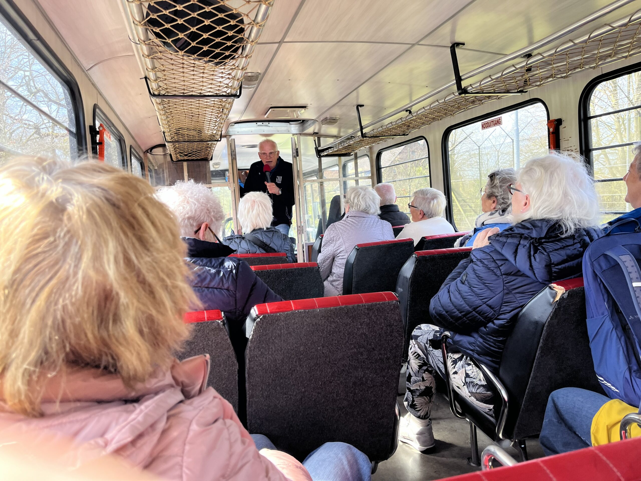 De andere groep reed met de boevenbus door Veenhuizen om het culturele erfgoed waarover het Nationaal Gevangenismuseum verteld met eigen ogen te zien De gids wees ons ook op de bijzondere monumenten en de sporen van de geschiedenis in het landschap.