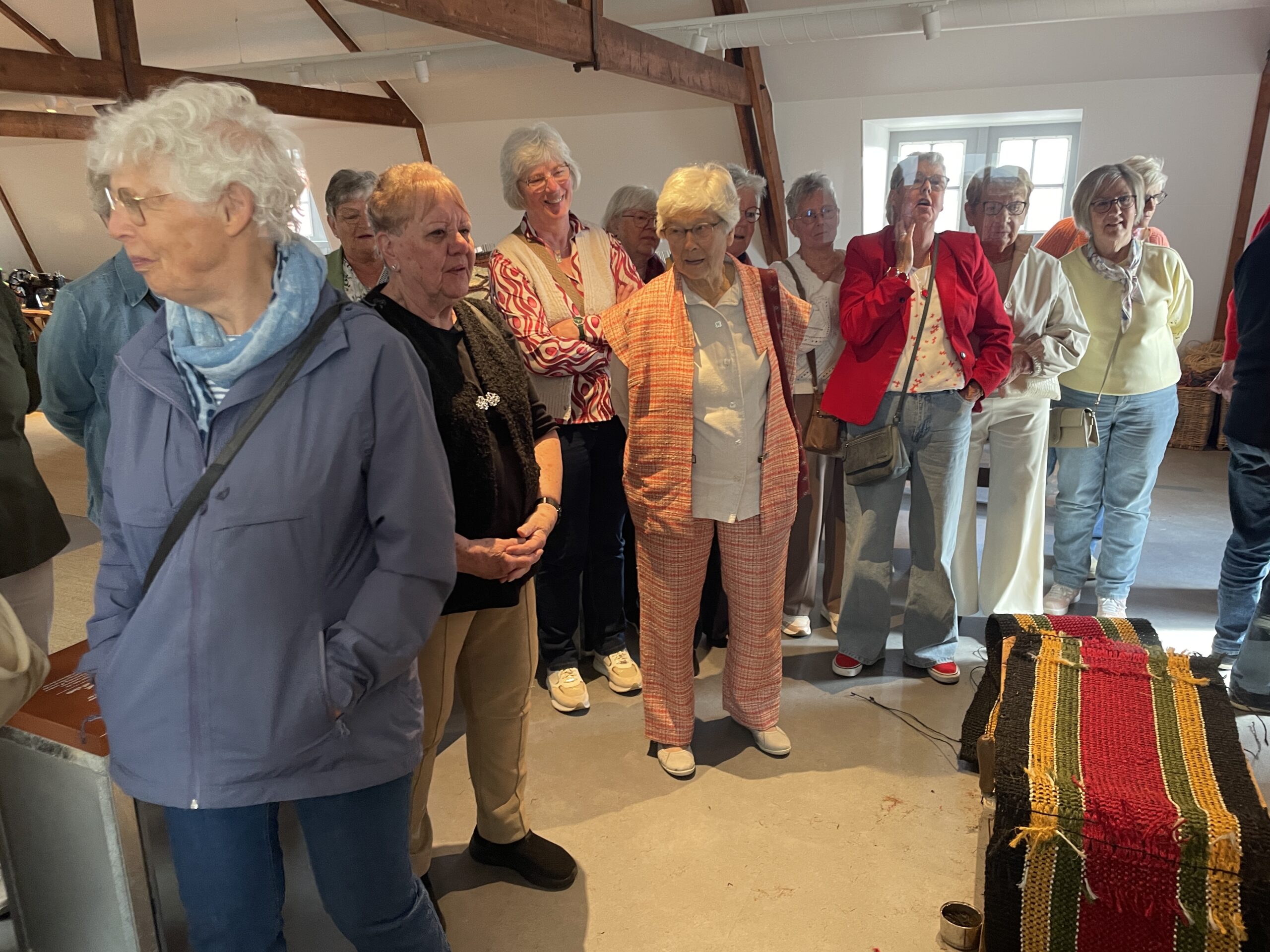 Onze eerste bestemming was het Tapijtmuseum in Genemuiden. Een bijzonder museum dat vorig jaar officieel werd geopend door koningin Máxima. Rondleider Harry nam ons mee in de rijke geschiedenis van de tapijtindustrie in Genemuiden, van ambachtelijke biezenmatten, de kokosweefgetouwen tot machinaal vervaardigde vloerkleden uit de 20e eeuw. Een inspirerende start van de dag!
