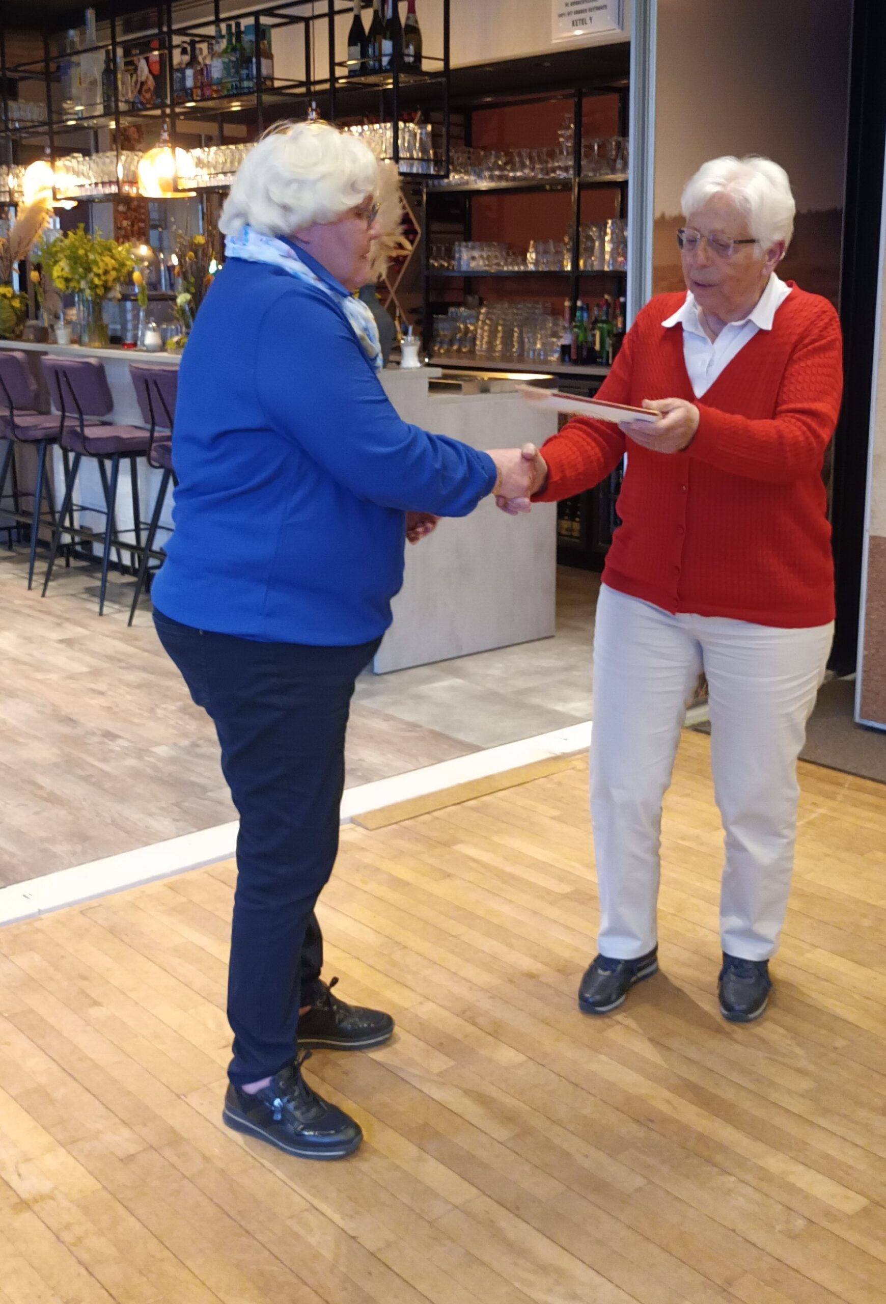 Iedereen gaat deze laatste keer met een mooi presentje naar huis. En Grietje Tissing, de organisator van de competitie, werd bedankt door Janna Mansier.