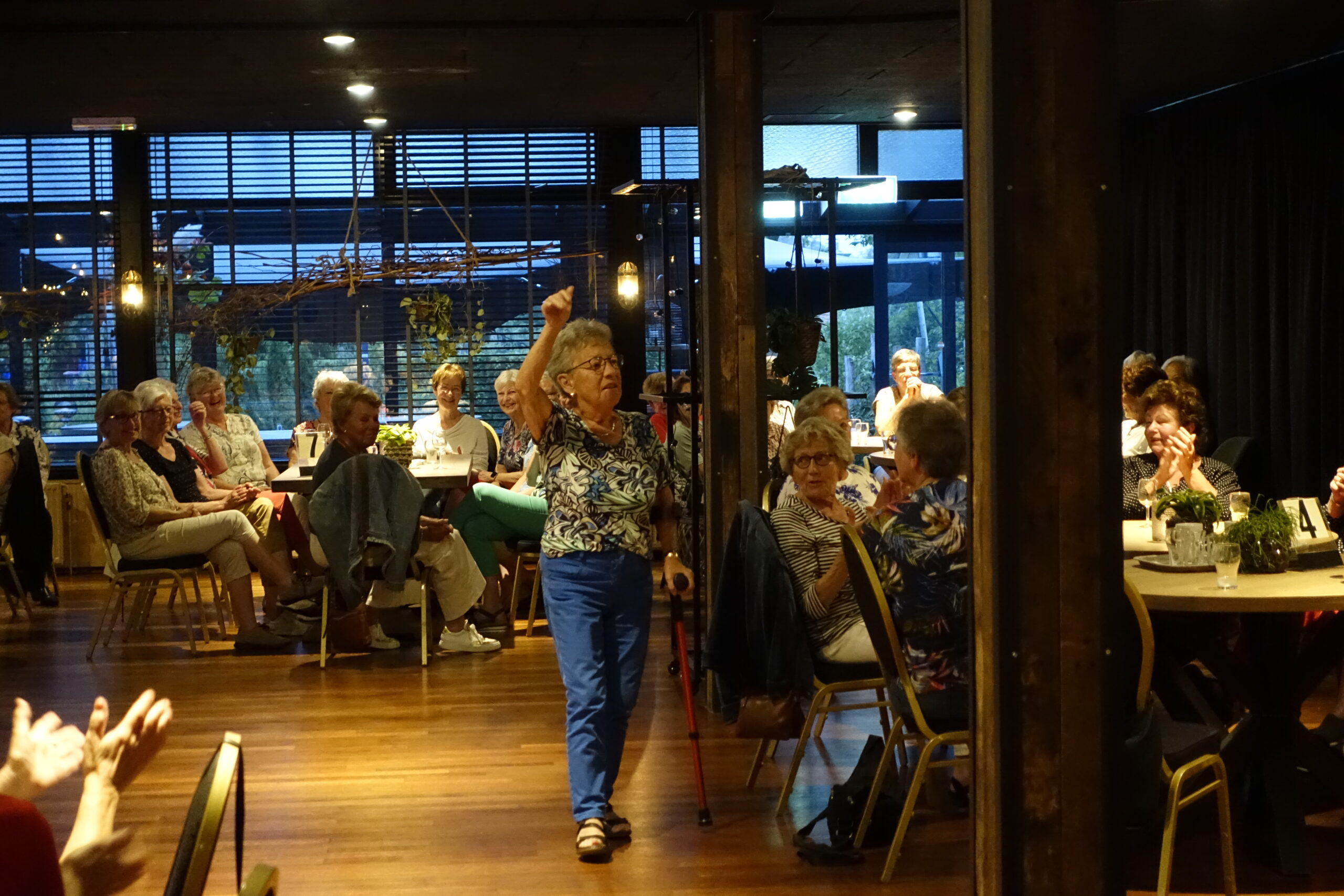 Bij het begin van de avond heeft de voorzitter namens iedereen Jans Jimmink bedankt voor haar inzet als centraal contactpersoon. Daarna is het seizoen afgesloten met een muziekquiz. De dames deden fanatiek mee om de ABC- of piepvragen als eerste te beantwoorden. Aaltsje kreeg ons binnen een kwartier de dansvloer op. Het kan een geslaagde avond genoemd worden.