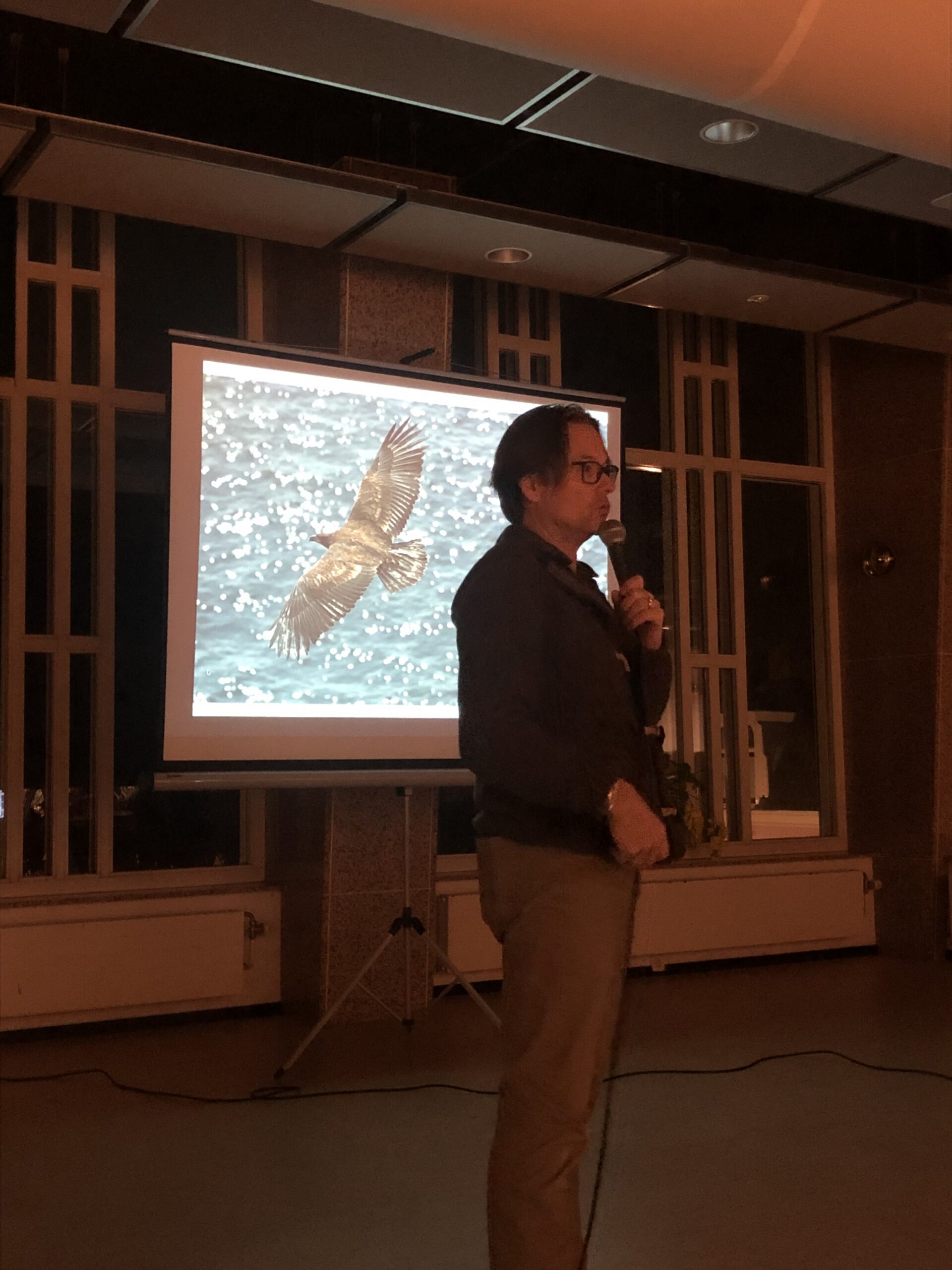 Maandagavond 20 januari kwamen de Vrouwen van Nu voor het eerst in het nieuwe jaar weer in de Klameare bij elkaar. Het bestuur had Paul Dolk uit Sint Annaparochie uitgenodigd. Paul had een jongens droom om o.a. grote orka's zelf te zien zwemmen in een baai in Canada, dit was te prijzig voor familie Dolk, dus toen hun huwelijksreis gepland moest worden in 1999, kon z’n jongensdroom uitkomen. En zo kwamen Paul en zijn vrouw aan in Open Hall een klein vissersdorp op het eiland Newfoundland in Canada. In dat kleine dorpje met 23 inwoners aan de Southern Bay begon z’n grote liefde voor natuur fotografie en dat kwam hij met ons delen. In 2003 hebben ze daar een huis gekocht om er drie maanden per jaar door te brengen om de prachtigste natuurfoto’s te maken op land en op en in het water, maar ook met een drone. Indrukwekkende beelden van Adelaars, Zaagbekken, Papegaaiduikers, zwarte Zeekoet, Zeearend, Oehoe en een Jan van Gent kolonie. Met bij behorende verhalen. In het water zijn volwassen Bultruggen van wel 15 meter lang en een vin is ongeveer 4 meter, de onderkant van de staart (8 meter breed) is een soort vingerafdruk, elke onderkant is anders getekend zodat je ze kan herkennen, een bultrug kan wel 200 jaar oud worden. Orka mannetjes kunnen wel 10 meter lang worden wegen 10 ton en hun vin kan 1.80 meter lang zijn. Ook de maanvis is een kanjer van wel 40 ton. Met foto’s die gemaakt waren met een drone met een boot er naast, kon je de grote van z’n indrukwekkende vis zien. Dolfijnen, Zalmen, Kabeljauw van alles kwam voorbij. Er leven ook Otters, het zelfde soort als in Nederland maar wel de grote variant van wel 1.20meter. En op het eiland, drie keer zo groot als Nederland, komen ook veel Vossen, Elanden en Coyote’s voor. Coyote’s is een soort wolf die heel snel vermeerderd en heel bloeddorstig is, alles eet wat in z’n bek komt, ook de honden van bewoners in de dorpen. Wie een ziet mag schieten, maar uitroeien lukt niet, dit is erg jammer want ze eten ook heel veel vogels. Ook komt er zomers soms zomaar een grote ijsberg vanuit Groenland langs drijven, zo groot dat de Klameare er wel drie keer in kan, deze smelt heel langzaam tot er niets mee van over is. De afsluitende foto’s waren van een Adelaar die een bierflesje had gevonden en het mee naar het nest nam, jammer natuurlijk dat het zomaar in de natuur lag, maar machtig mooi voor de foto. Wat een geslaagde avond met prachtige foto’s en mooie verhalen, we hebben genoten. Niesje Abma