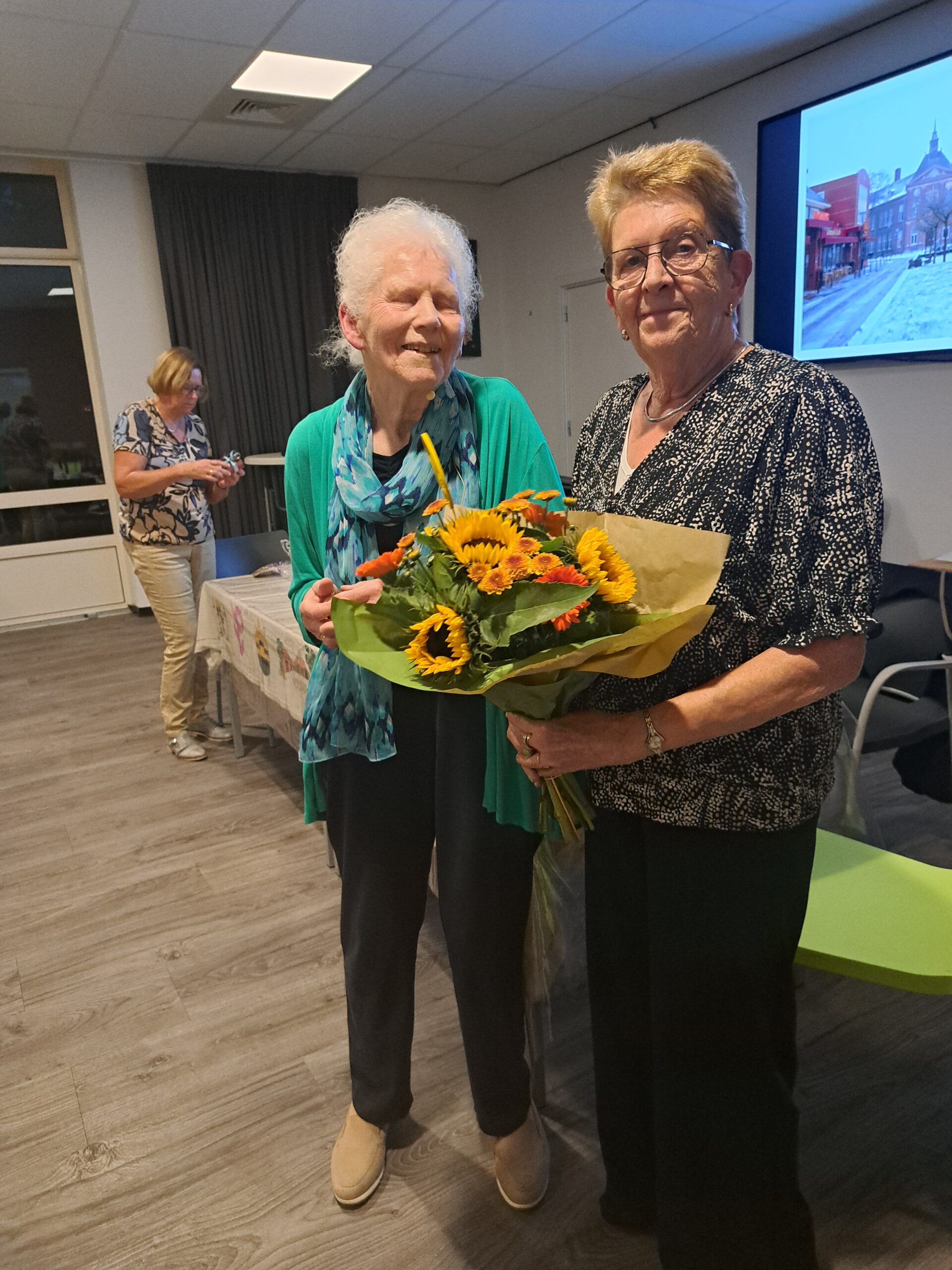 Op de afdelingsavond in september is de beker voor de eerste prijs van het seizoen 2024-2025 uitgereikt aan Greet van der Walle. Naast de beker ontving ze ook nog een boeket bloemen. De tweede proijs was voor Tineke Homan, ook voor haar was er een boeket. Hilly Roggeveld is derde geworden en omdat zij niet aanwezig was, heeft Marianne Fokkens, de organisator, haar een boeket thuis gebracht. De aanmoedigingsprijs, een chocolade medaille, ging naar Aaltje Wiffers, die op haar 85e nog meedoet. Voor Marianne was er als bedankje voor het regelen een doosje bonbons.