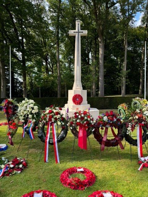 Vijf leden van de wandelgroep "Stap voor stap" van de Vrouwen van Nu Hoevelaken hebben op 24 september het Rosandepad in Oosterbeek gelopen. De wandeling gaat over herstelde historische paden en boerenland, over romantische landgoederen, tussen beekjes, bruggetjes en beukenlanen. En dat afgewisseld met prachtige uitzichten over de uiterwaarden van de Nederrijn. Onderdeel van het wandelpad is de groene bedstee op landgoed Mariëndaal, een tunnelhaag van beuken en linden. Bijna aan het einde liepen we langs de Airborne begraafplaats, waar rond 1800 soldaten zijn begraven. De meeste van hen zijn in september 1944 gesneuveld bij de poging Europa te bevrijden tijdens de operatie Market Garden. De herdenking van deze luchtlanding, die precies 80 jaar geleden heeft plaatsgevonden, was net geweest. Er lagen nog vele prachtige kranzen bij het centrale monument en bij de graven waren veel bloemen neergelegd. Het was een prachtige, afwisselende wandeling van 14 kilometer met enkele pittige stijgingen.