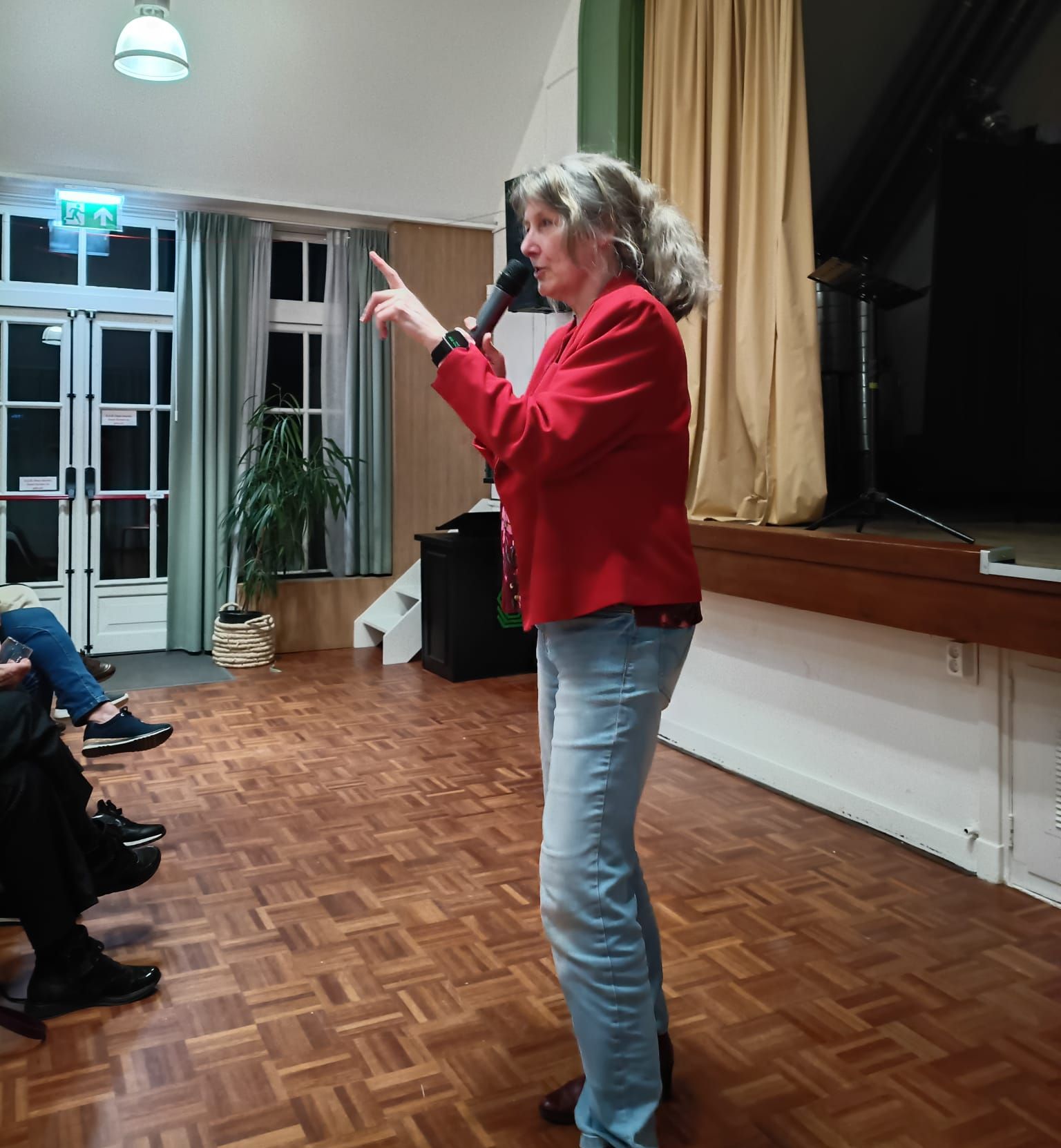 Vervolgens nam schrijfster Nicolet Steemers ons mee in haar interactieve lezing: “Schijn bedriegt”. Een verhaal van eigen hand, waarin een rechercheur enkele verdachten van een moord aan de tand voelt. Uiteindelijk was Marja de beste speurneus. Zij had de juiste dader uit het verhaal gehaald met het motief en bewijs en won een gesigneerd boek van Nicolet.
