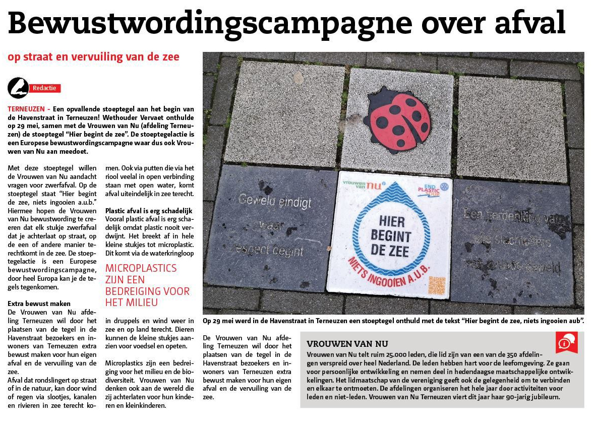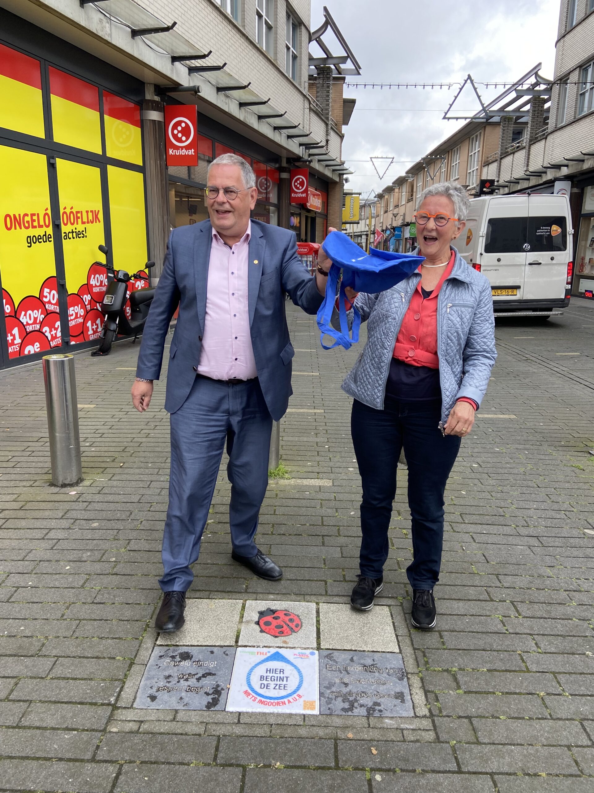 Ook afdeling Terneuzen doet mee met de stoeptegelactie tegen de vervuiling van de zee! In aanwezigheid van 15 leden onthulde voorzitter Riet van de Langkruis op 29 mei samen met wethouder Jurgen Vervaet de tegel, die de dag ervoor door de gemeente was geplaatst. Na speeches van de wethouder en Riet gingen we weer naar het Stadhuis waar we onthaald werden op een kopje koffie met gebak. Er was ruimschoots gelegenheid om van gedachten te wisselen met elkaar, de wethouder en onze contactpersoon van de gemeente / Natuur & Zo. We hopen dat de tegel zorgt voor nog meer bewustwording voor ons milieu en dat de tekst meehelpt in de strijd tegen vervuiling. Wat zou het mooi zijn als we de omgeving schoner kunnen nalaten aan de generaties na ons; met minder afval en microplastics dan nu het geval is.