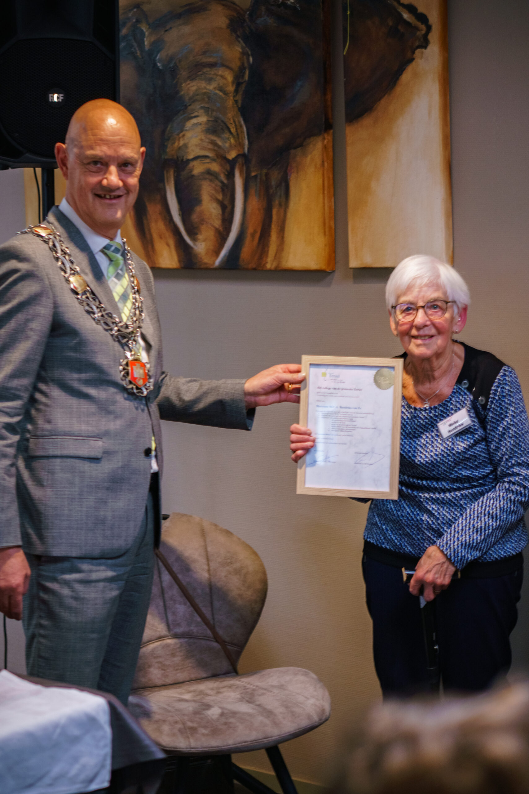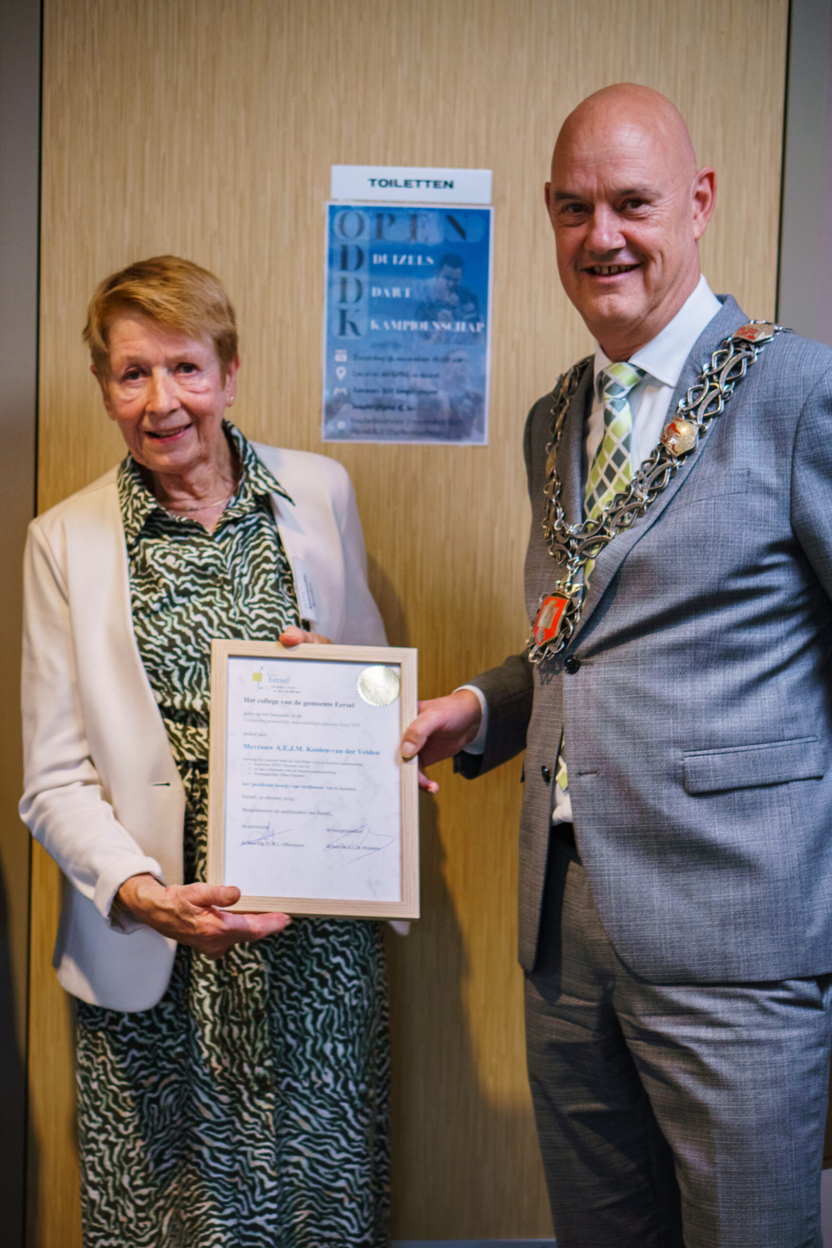 Op zondag 12 oktober 2025, tijdens het 95-jarig jubileumfeest van onze afdeling, heeft burgemeester Wouters het Predicaat van Verdienste uitgereikt aan Antoinette Koolen en Mieke Hendriks. De burgemeester prees hen voor al het vrijwilligerswerk dat ze gedaan hebben voor verenigingen in Duizel en Eersel. Ook bij Vrouwen van Nu kunnen we altijd op hen rekenen. Van harte gefeliciteerd met deze blijk van waardering!