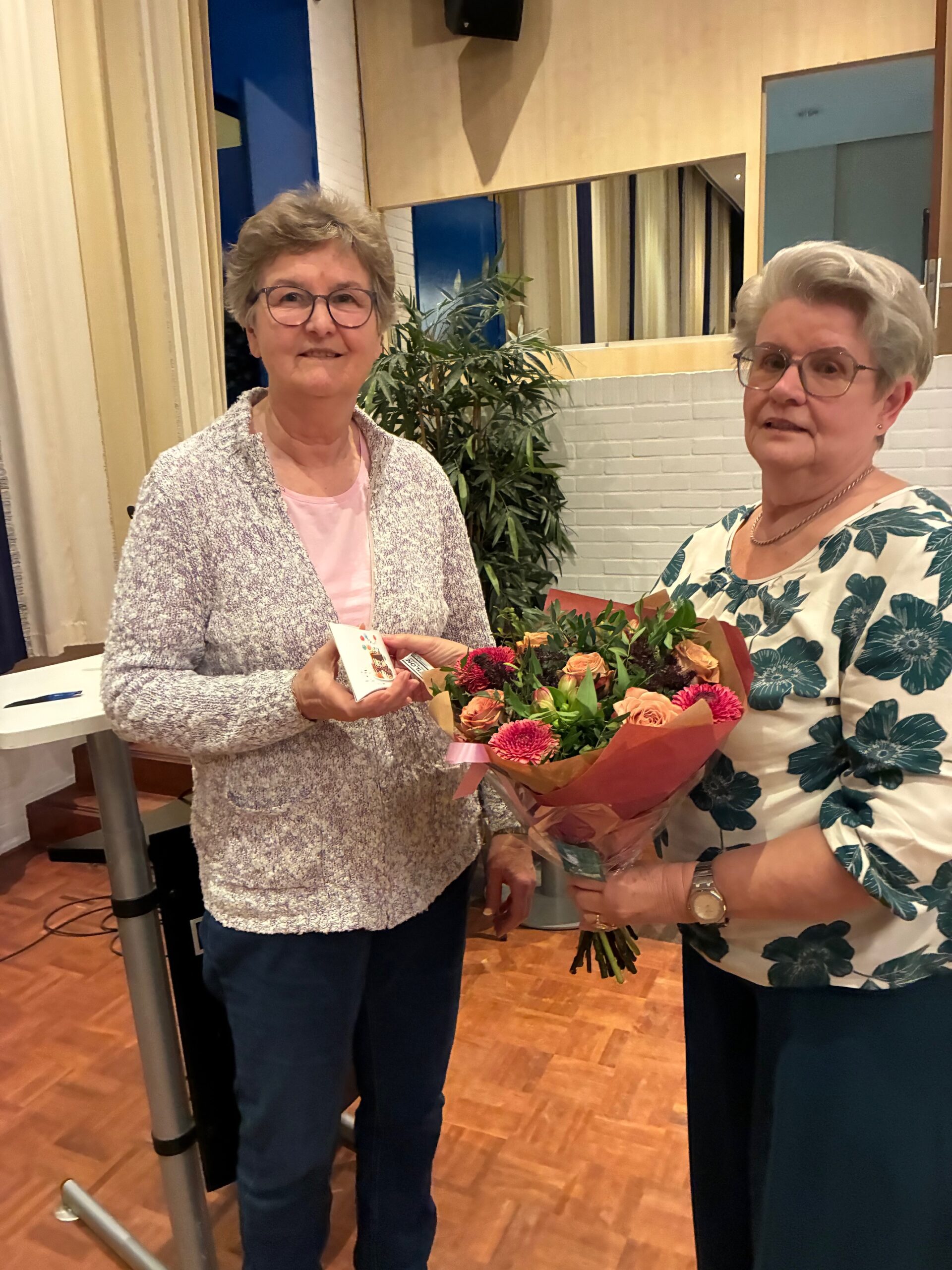 Marianne Bos gaat verhuizen en wordt bedankt voor het benodigde werk in het bestuur. Ze ontvangt bloemen en een kadocheque.