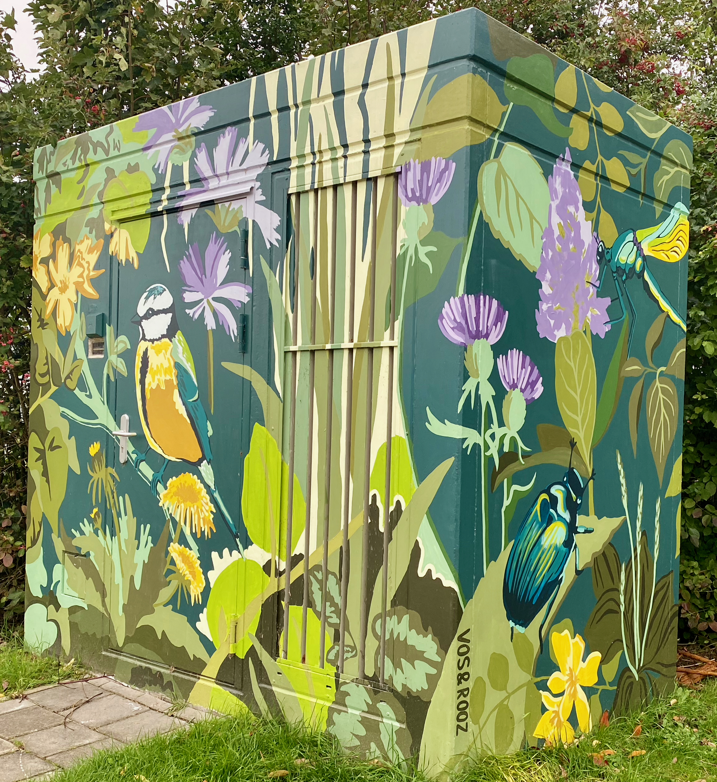 www.vosvormenverf.nl Bijgaand foto's van 1 van de beschilderde transformatorhuisjes in gemeente de Wolden die Vera beschilderde. De dagvoorzitter heet eenieder hartelijk welkom in het bijzonder Vera Vos, die ons gaat vertellen over haar werk na haar opleiding aan de kunstacademie in Groningen. Over haar werk en hoe zij daar naartoe is gegroeid, door jongeren te stimuleren met activiteiten o.a. het vlaggen project, het beschilderen van de glasvezel hokjes die er uit zien als bushokjes (heel mooi) en ook de interviews met de keetjongeren, ga je er anders over oordelen. Het Drents zijn is voor deze jongeren heel belangrijk. Bij haar verhaal liet ze beelden zien waaronder enkele fragmenten van uitzendingen op RTV-Drenthe. Femmy bedankt Vera voor de fijne avond en dat wij trots mogen zijn op jonge mensen met zoveel ambitie.Op www.vosvormenverf.nl kun je Vera en haar werk bekijken.